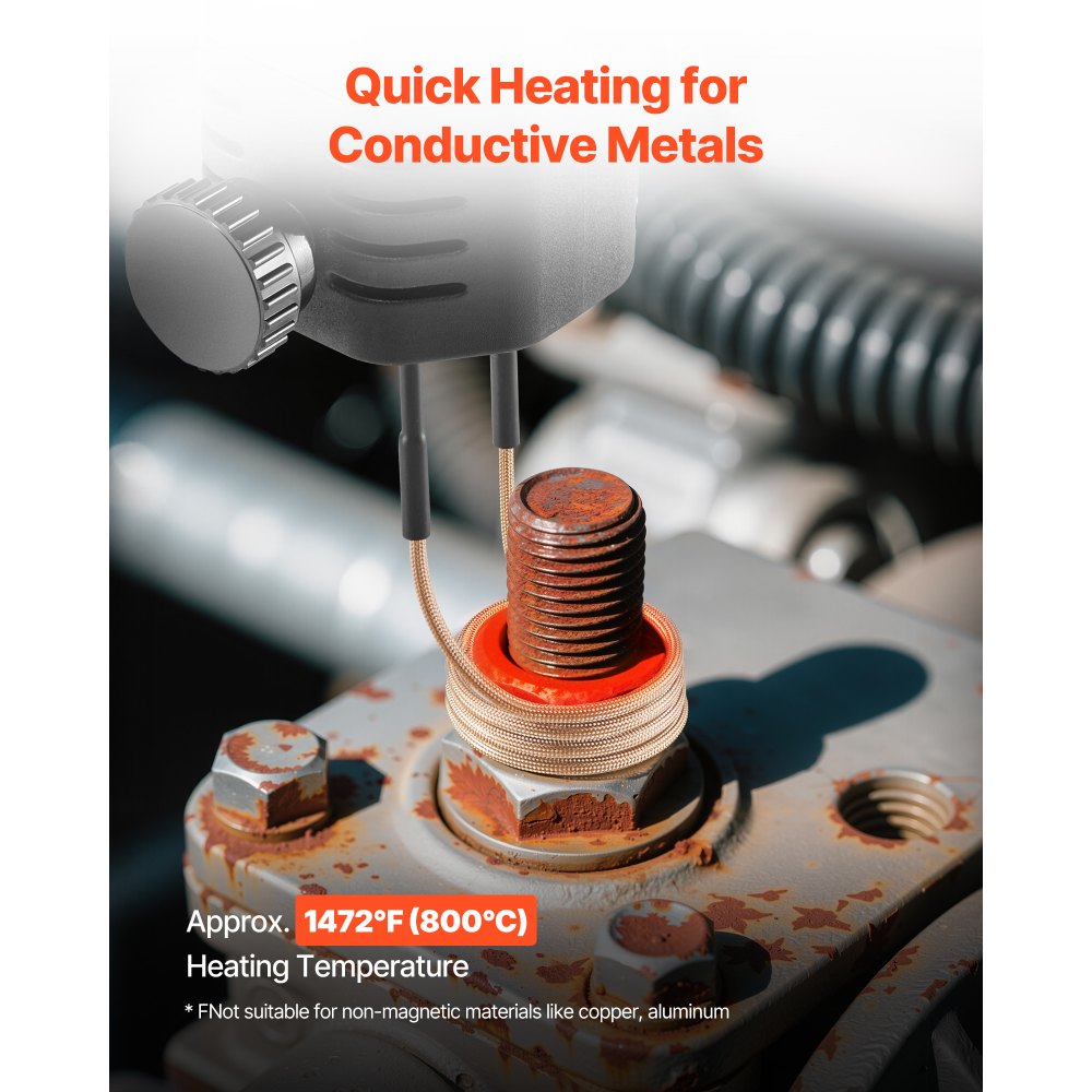 10-dielna sada cievok: Sada vykurovacích cievok obsahuje 8 štandardných cievok rôznych priemerov, kompatibilných s maticami od 0,2 do 1,6 palca / 5 – 40 mm, ktoré zabezpečujú presné a efektívne vykurovanie. Cievky v tvare U a flexibilné sú navrhnuté tak, aby zvládli nepravidelné diely, dlhé hriadele a zakrivené obrobky. Vhodné pre rôzne druhy údržby vozidiel a zariadení.