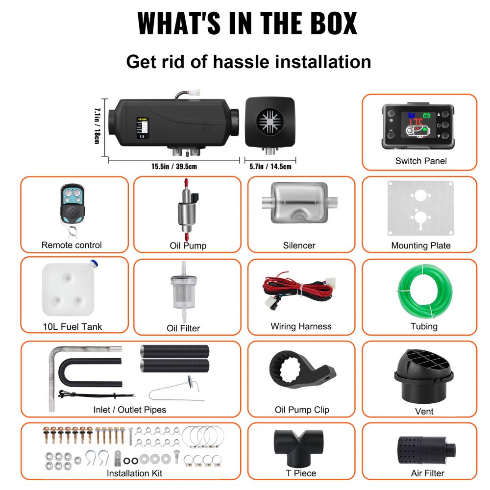 Cítite sa teplejšie raz-dva: Cítite teplo s každým nádychom! Vdýchnutý chladný vzduch sa ohrieva a stáva sa teplejším vďaka hliníkovej spaľovacej komore. Dieselové kúrenie sa rýchlo zahrieva a zvyšuje teplotu vozidla do 10 minút; dokáže tiež predhriať motor a odstrániť námrazu z okien raz-dva!