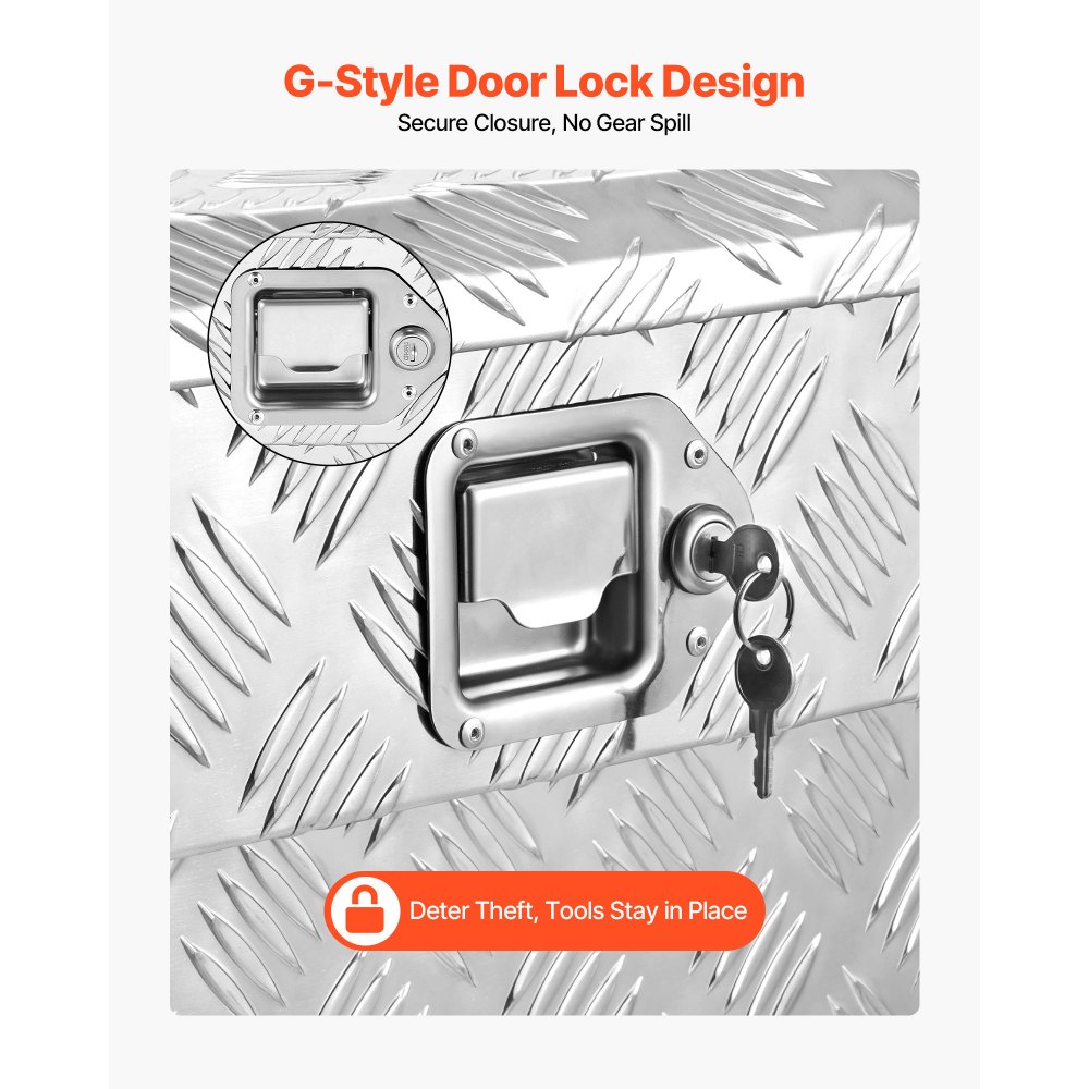 Box na náradie do korby nákladného auta, odolný hliníkový box na náradie s dezénom, organizér na úložný box na náradie so zámkom a kľúčom, ideálny pre pickup, korbu nákladného auta, obytný automobil, príves, 1219 x 340 x 330 mm, strieborná - Auto-moto