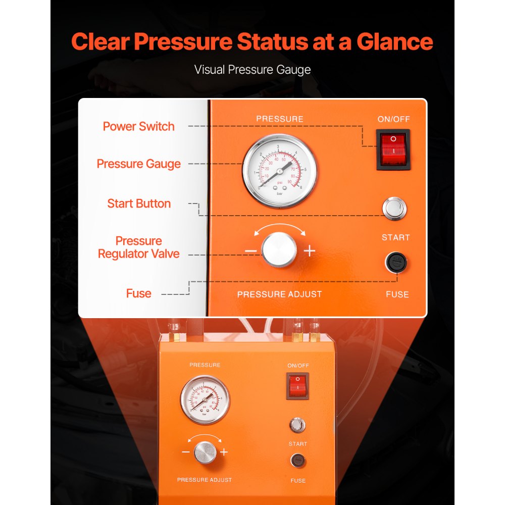 Elektrická odvzdušňovacia súprava VEVOR, profesionálna odvzdušňovacia súprava hlavného brzdového valca 220 V s manometrom a vstavaným vzduchovým čerpadlom, všestranná sada adaptérov na odvzdušňovanie bŕzd pre jednosmerný aj striedavý prúd