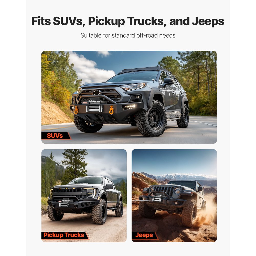 Široká kompatibilita: Univerzálny montážny vzor je vhodný pre väčšinu SUV, pick-upov a džípov. Sada navijaka obsahuje káblové vedenie, hák a napájacie káble – pripravené na rýchle nastavenie a použitie.