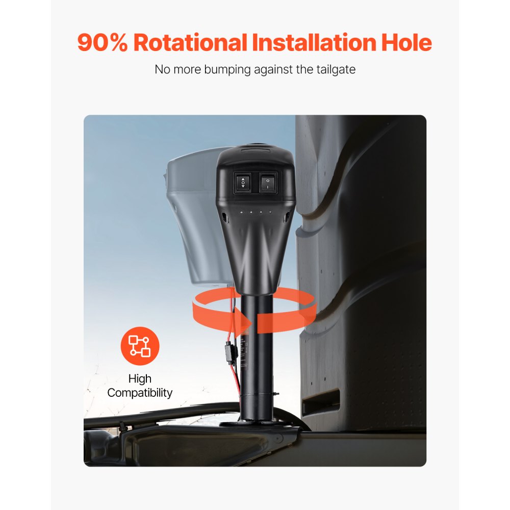 Vysoká nosnosť: Elektrický zdvihák prívesu VEVOR sa môže pochváliť pôsobivou nosnosťou 5000 libier a rozsahom zdvihu 10 až 33,8 palcov.