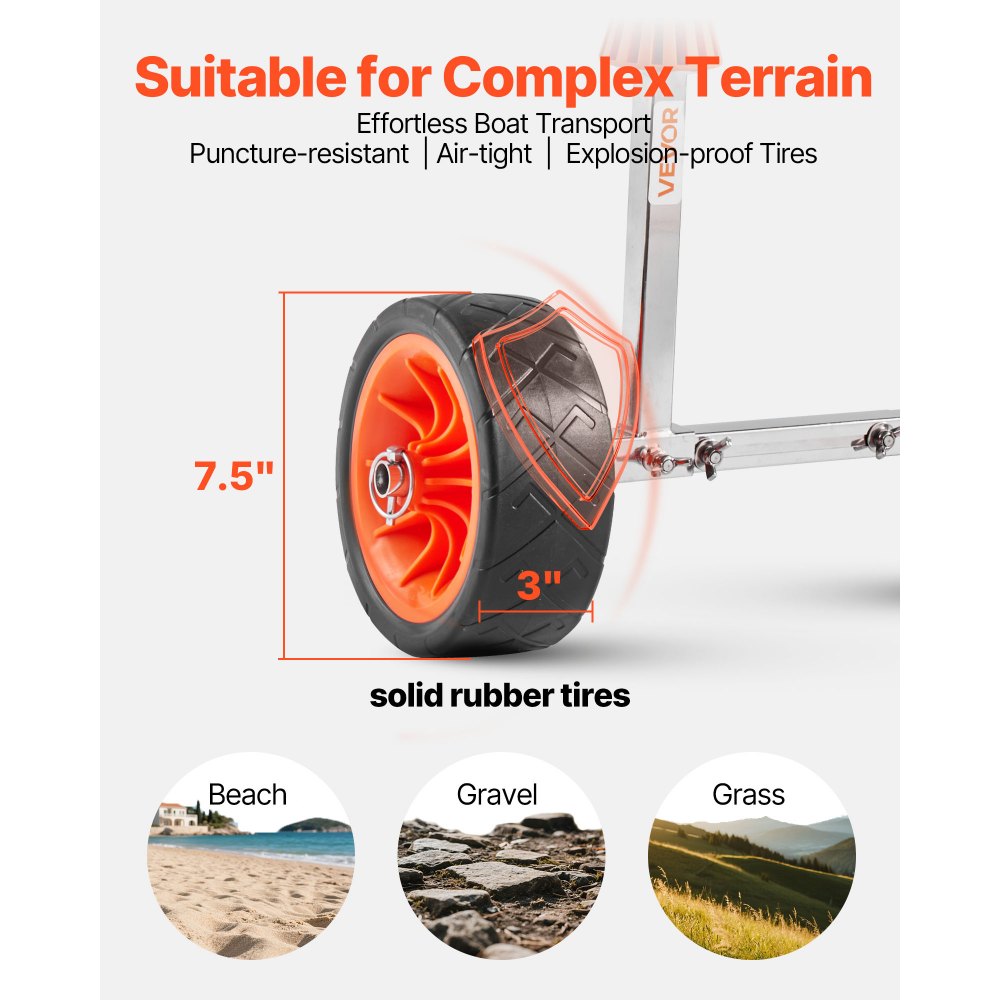 Kajakársky vozík VEVOR, nosnosť 113,4 kg, vozík na kanoe s 19,1 cm plnými gumovými pneumatikami a stojanom, zostavenie a rozloženie v priebehu niekoľkých sekúnd, vozík na paddleboardy pre kajaky, kanoe a paddleboardy