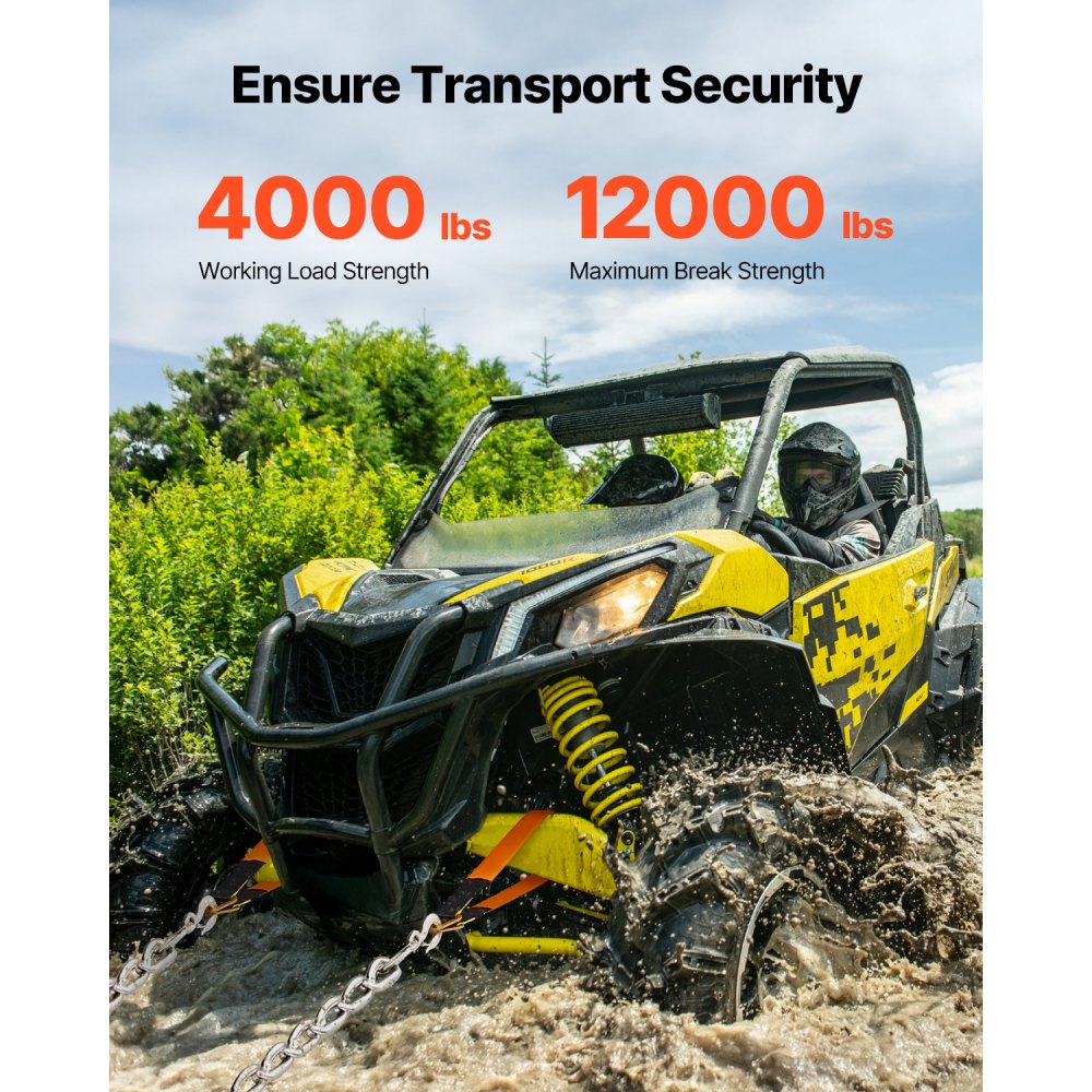 Popruhy na nápravy VEVOR, 2 palce x 3,2 stopy, upevňovacie popruhy na nápravy s vysokou pevnosťou v tahu 12 000 libier s D-krúžkami, balenie 4 kusov, upevňovacie popruhy na nápravy s vysokou pevnosťou v tahu, pre osobné automobily, prívesy, nákladné vozidlá, ťahanie a prepravu - Auto-moto