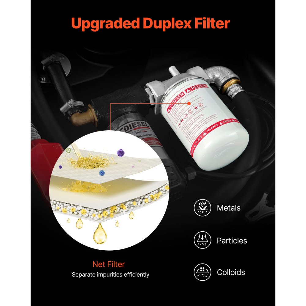 Vylepšený dizajn filtra: V porovnaní s inými produktmi je naša nádrž na palivo vybavená duplexným filtrom, ktorý ponúka čistejšiu naftu. Predný filter vnútornej nádrže dokáže oddeliť veľké častice nečistôt a prémiový vonkajší filter je navrhnutý tak, aby filtroval malé nečistoty, ako sú kovy, koloidy, drobné častice atď.
