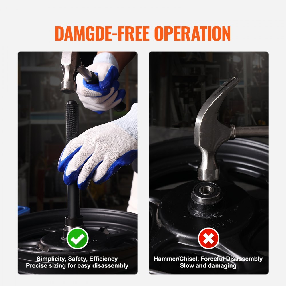 Viacúčelové využitie: Vďaka širokej škále veľkostí a dlhej rukoväti naša sada na vyťahovanie ložísk a tesnení zjednodušuje demontáž a výmenu ložísk kolies pre bicykle, motocykle, autá, SUV a ďalšie. Sada na vyťahovanie ložísk a tesnení je perfektným spoločníkom pre profesionálnych autoservisov aj domácich majstrov.