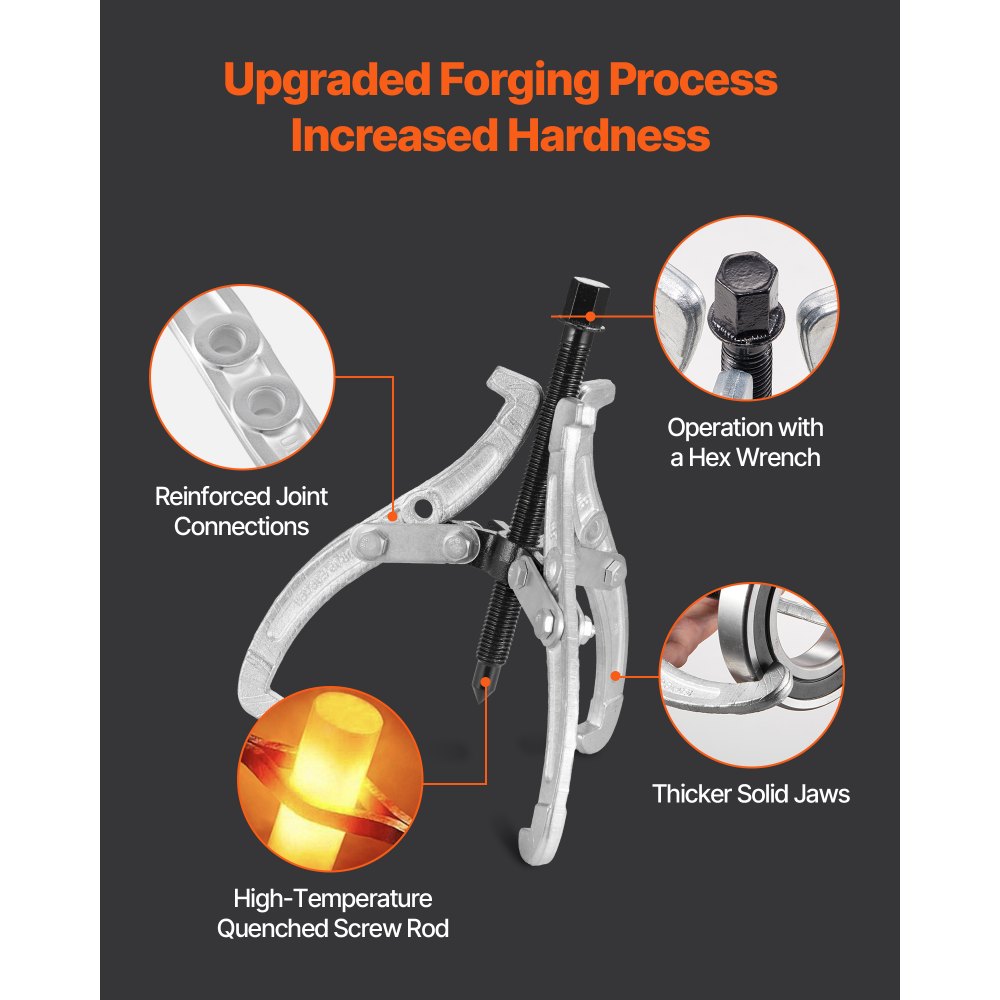 Sada sťahovákov ozubených kolies VEVOR, 76,2 mm/101,6 mm/152,4 mm/203,2 mm 3-čeľusťový sťahovák ložísk s obojstrannými čeľusťami, 2-čeľusťový/3-čeľusťový sťahovák remenice, 4-dielna sada nástrojov na sťahovanie ložísk na demontáž zotrvačníka ložísk remenice - Auto-moto