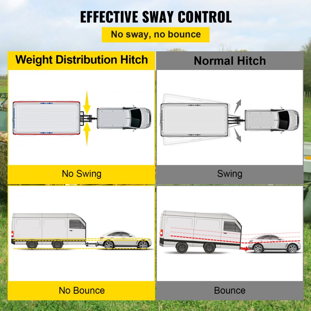 Ťažné zariadenie VEVOR s rozložením hmotnosti, nosnosť 456 kg, vyrovnávanie zaťaženia, kontrola kývania, guľa 5 cm a zdvíhanie 10 cm, 4 reťaze a univerzálny držiak rámu, ťahanie prívesu bez odskakovania - Auto-moto