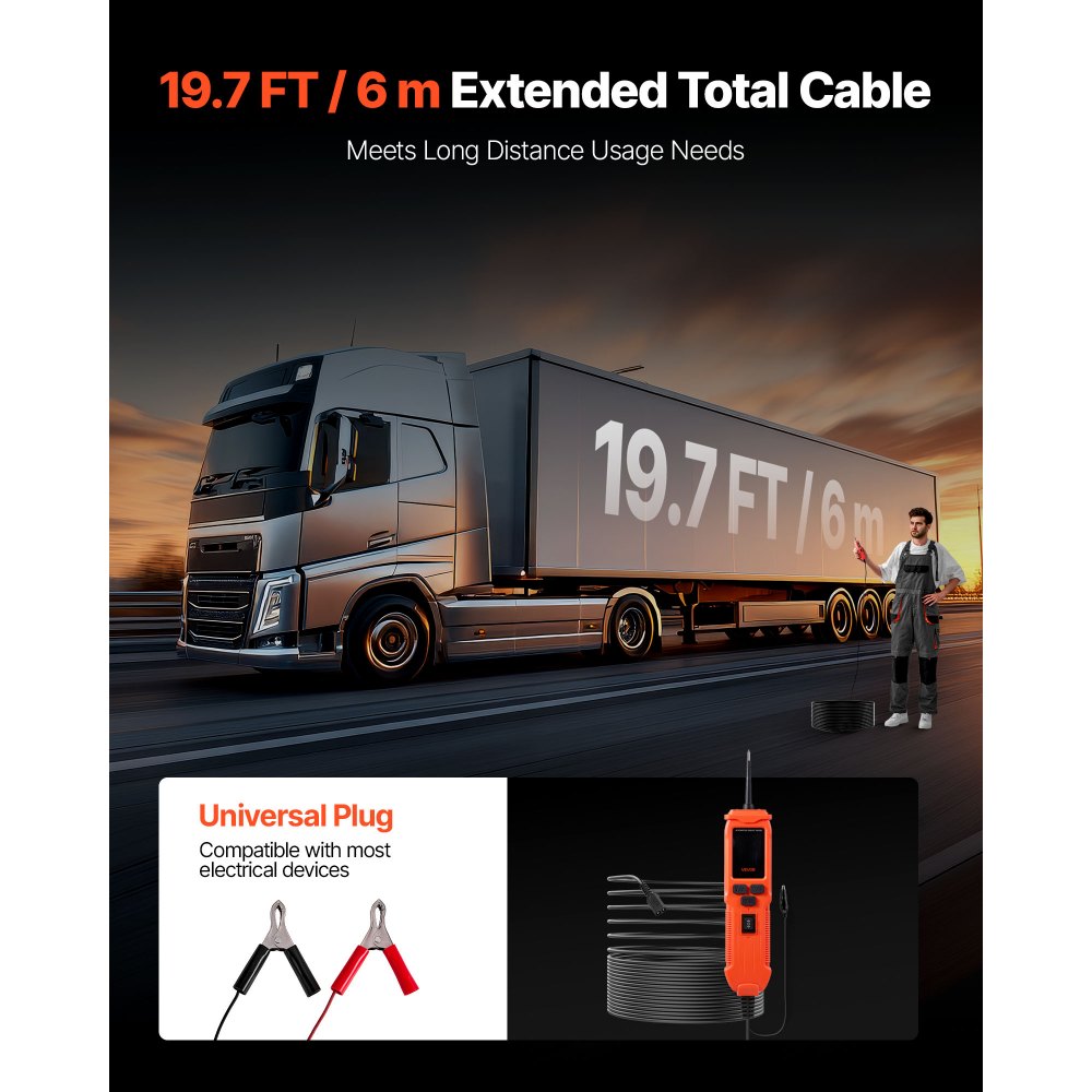Tester automobilových obvodov VEVOR, tester sondy pre napájacie obvody DCV 8 – 35 V s farebným TFT displejom a osvetlením, sonda pre tester automobilového napájania s káblom 6 m, vyhľadávač elektrických detektorov 2 v 1 - Auto-moto