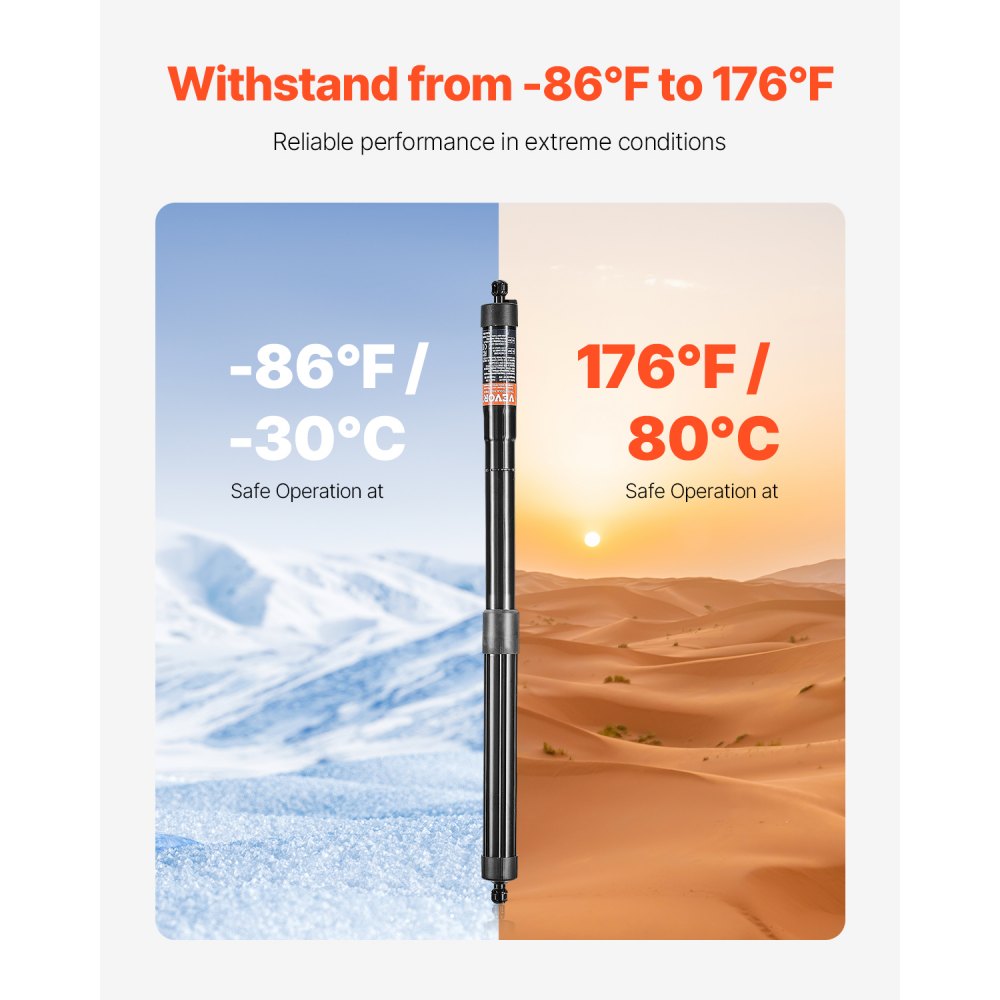 Odolný a robustný: Vylepšite svoje vozidlo týmto odolným tlmičom zadných dverí, ktorý je vyrobený tak, aby odolal extrémnym teplotám od -34 °C do 76 °C. Oceľové telo odolné voči nárazom a korózii zaisťuje dlhotrvajúcu životnosť a zabraňuje deformácii, vďaka čomu vaše zadné dvere fungujú hladko po celé roky.