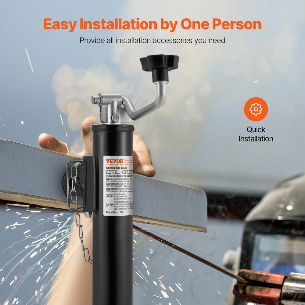 Spoľahlivý a odolný: Tento zdvihák na príves je vyrobený z odolnej uhlíkovej ocele s pozinkovanou povrchovou úpravou odolnou voči hrdzi. Je pripravený na všetko a odoláva všetkým druhom prostredia bez toho, aby podľahol hrdzi.