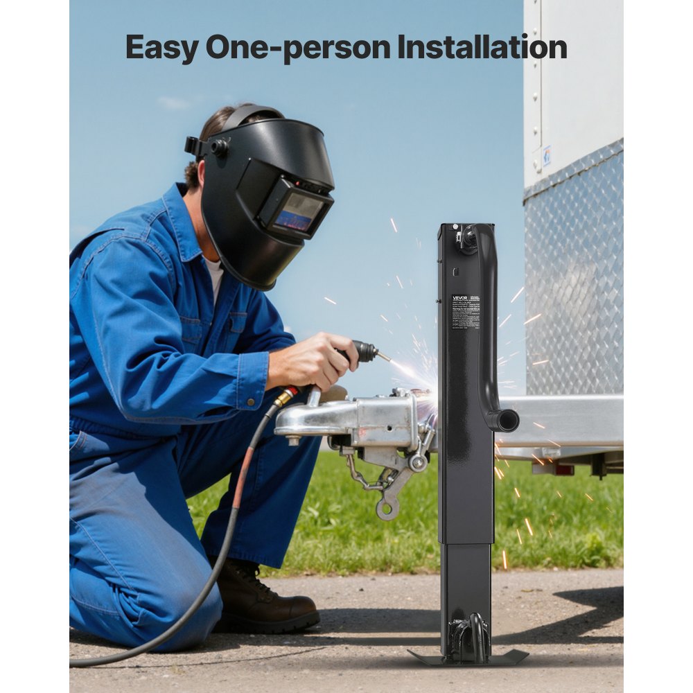 Rýchla inštalácia jednou osobou: Zdvihák prívesu so sklopnou nohou môže namontovať a zaistiť jeden používateľ v priebehu niekoľkých minút pomocou základného náradia, čo z neho robí rýchle a svojpomocné vylepšenie vášho prívesu.