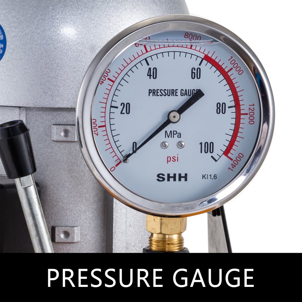Presný tlakomer: Toto vzduchovo-hydraulické čerpadlo má presný tlakomer, odolný voči nárazom, ktorý pomáha sledovať tlak počas prevádzky čerpadla. Od 2 MPa do 70 MPa môžete pomaly skúšať a zvoliť si správny pracovný tlak, ktorý potrebujete.
