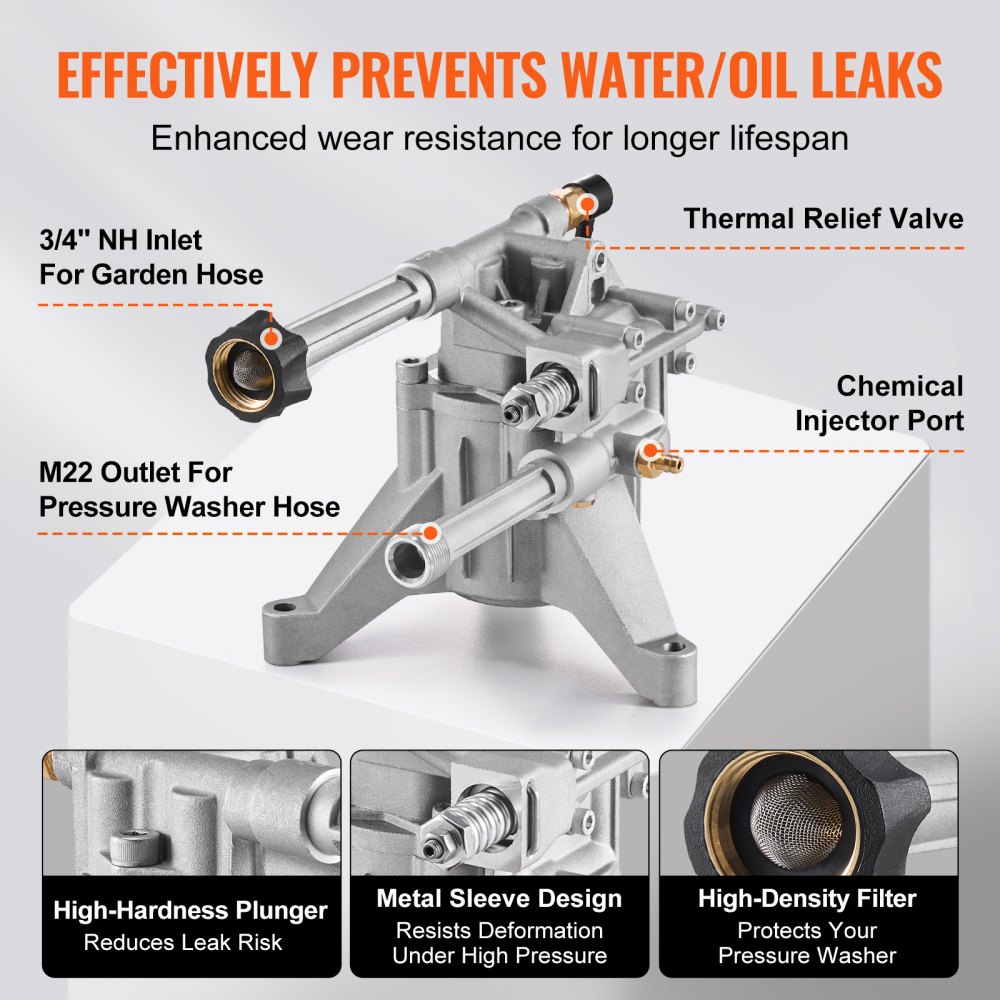 Bezúdržbová konštrukcia: Toto náhradné čerpadlo pre tlakový čistič má bezúdržbovú kľukovú skriňu, vďaka čomu nie je potrebná výmena oleja. Je ideálne pre elektrické čističe s tlakom 2500 – 3000 PSI a prietokom 2,5 GPM a je perfektné na čistenie stien, plotov, chodníkov, vozidiel a ďalších povrchov.
