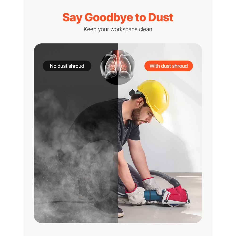 Bezpečné rezanie, široké použitie: Tento kryt na zachytávanie prachu je určený na rezanie betónu, kameňa, dreva a iných murovaných materiálov (nie je vhodný na rezanie kovu).