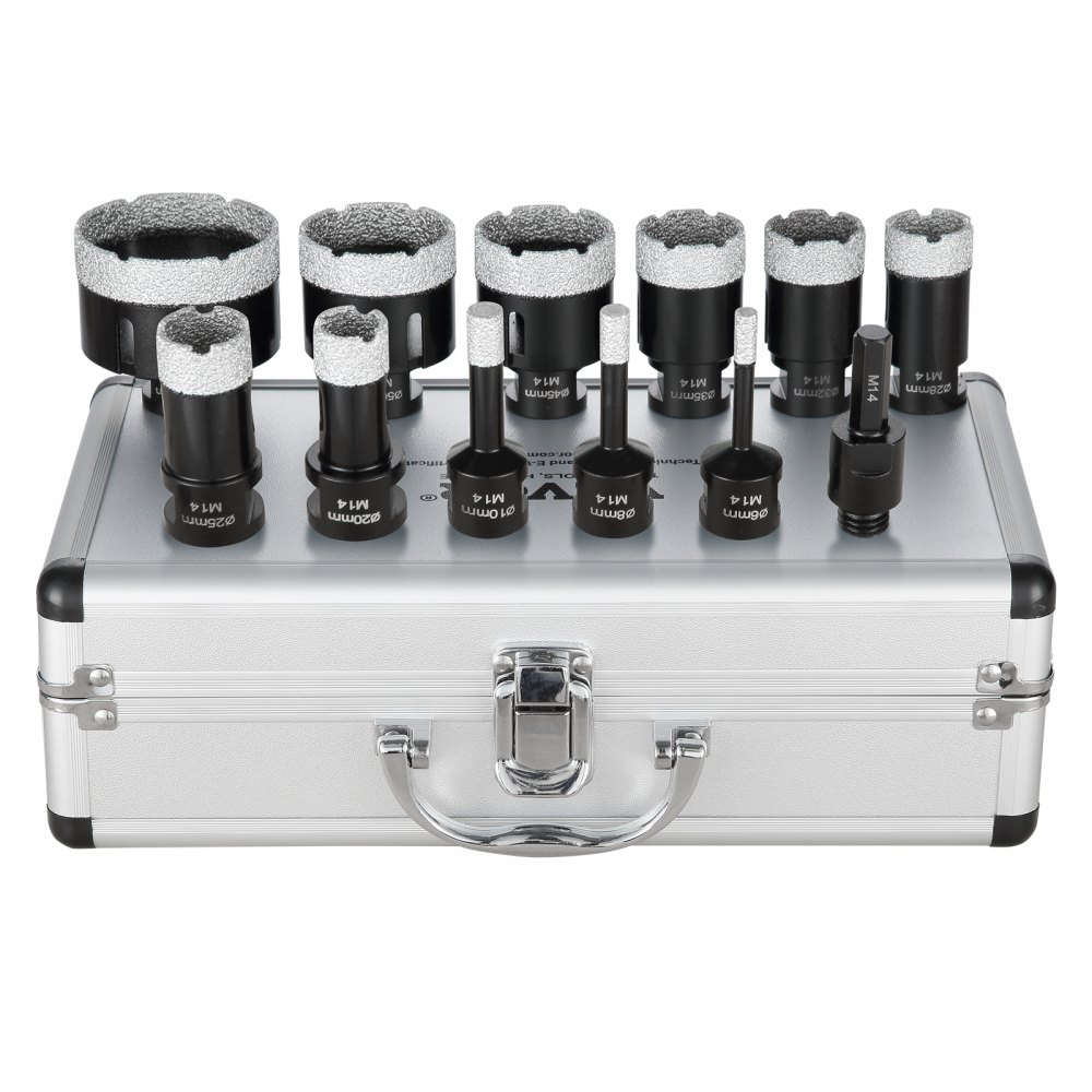 Sada diamantových jadrových vrtákov VEVOR, 11 ks 6/8/10/20/25/28/32/35/45/50/65 mm, sada diamantových dierových píl, s konektorom M14 a úložným puzdrom na suché a mokré vŕtanie, diamantové vrtáky do dlaždice a keramiky