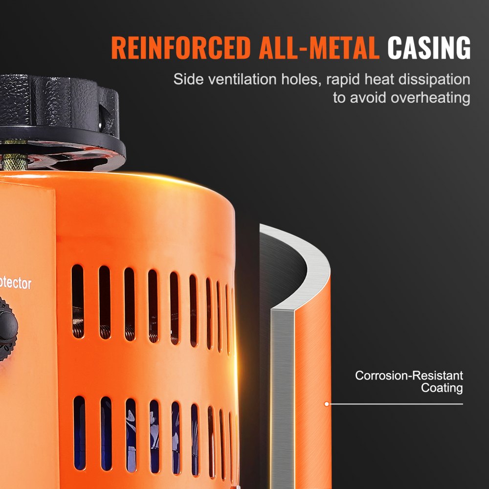 Viaceré bezpečnostné ochrany: Náš transformátor s premenlivým napätím je navrhnutý s ohľadom na vašu bezpečnosť a je vybavený poistkami, tepelným spínačom a resetovateľnou ochranou proti preťaženiu, čím poskytuje nepretržitú ochranu vášho zariadenia. Náš transformátor je ideálny pre domáce aj priemyselné aplikácie a vytvára bezpečné a stabilné napäťové prostredie pre všetky vaše zariadenia.