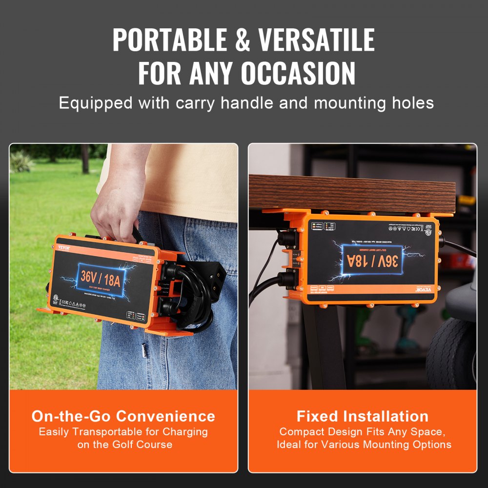 Nabíjačka batérií VEVOR 36 V pre golfové vozíky, 18 AMP, inteligentná nabíjačka batérií so zástrčkou v tvare D, kompatibilná s olovenými batériami AGM/GEL/EFB MF NMC LiFePO4 pre EZGO TXT, vodotesná IP67, certifikovaná ETL - Elektrotechnika