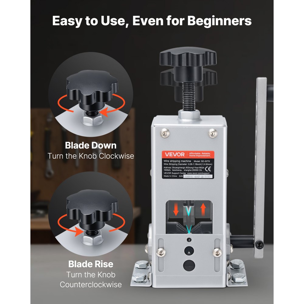 Široký sortiment odizolovacích drôtov: Náš ručný odizolovací stroj je vhodný pre drôty s priemerom od Φ0,06 do 1,18 palca (1,5 až 30 mm), od tenkých drôtov až po hrubé káble. Ideálne pre domáce použitie, DIY projekty, garáže a malé dielne.
