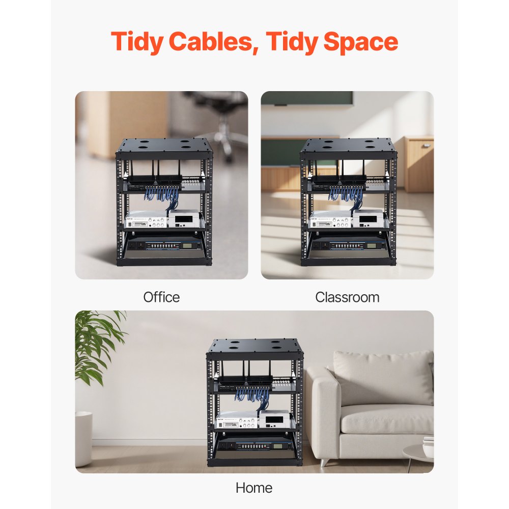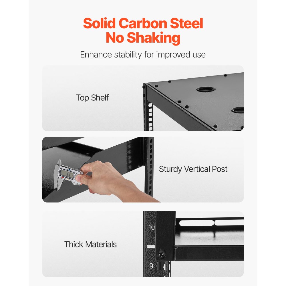 Sieťový rack VEVOR 12U s otvoreným rámom, hĺbka 585 mm, nástenný alebo stojaci serverový rack, odolný 4-stĺpový, s vetranými policami a montážnym hardvérom, pojme všetky vaše sieťové IT zariadenia, AV zariadenia. - Elektrotechnika