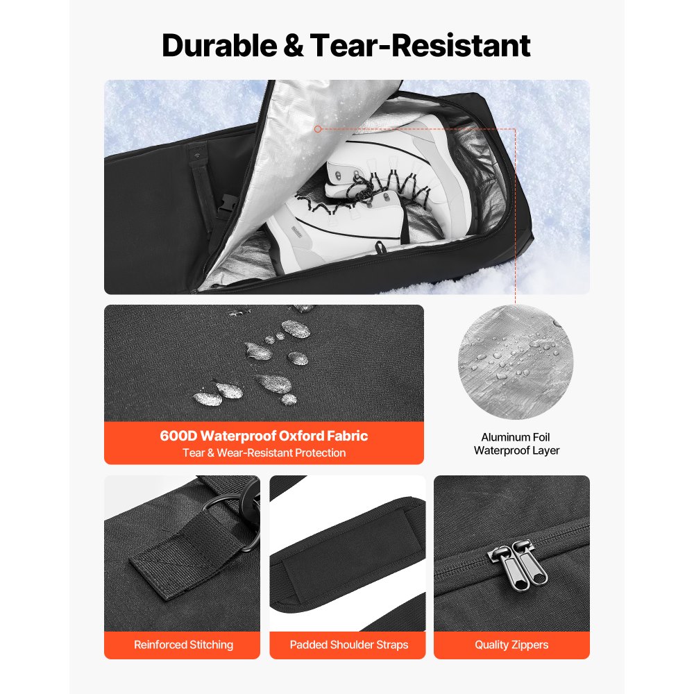 Taška na lyže VEVOR na kolieskach, do 175 cm, polstrovaná taška na snowboard s kolieskami na cestovanie lietadlom, vodeodolná oxfordská tkanina 600D, s nastaviteľnými popruhmi, na lyže, palice, okuliare, rukavice, prilbu, topánky (čierna) - Elektrotechnika