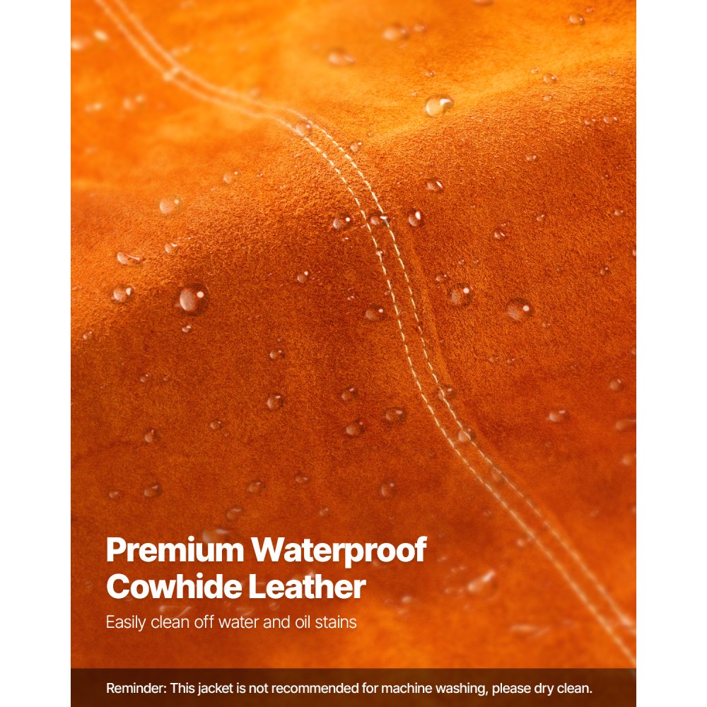 Resistente al agua y duradera: esta chaqueta para soldar resistente al fuego está hecha de piel de vaca de primera calidad, es impermeable y fácil de limpiar con un mantenimiento mínimo. Nota: se recomienda la limpieza en seco y no se recomienda el lavado con agua, ya que puede reducir la vida útil de la chaqueta de cuero.
