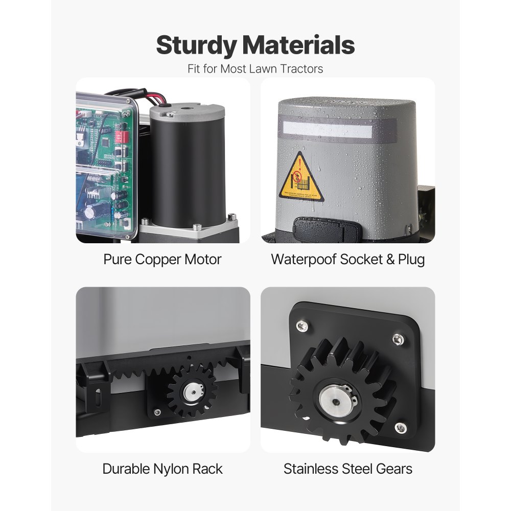 Diseño duradero para entornos hostiles: Fabricado con una carcasa de aluminio fundido y ABS, este abridor de portones corredizos es duradero y resistente a daños. La cremallera de nailon ofrece una gran resistencia a los impactos, mientras que los engranajes de acero inoxidable son altamente resistentes a la corrosión, duraderos y robustos. Con una clasificación IP44 de resistencia al agua y al polvo, funciona de forma fiable en cualquier condición climática