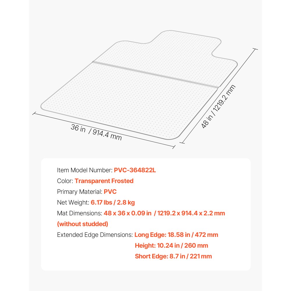 Alfombra Protectora para Suelos Alfombrados 1219,2 x 914,4 mm Alfombrillas de PVC para Silla de Oficina Antideslizante Fácil de Limpiar Deslizamiento Suave para Hogar, Oficina, Transparente - Construcción y estructuras
