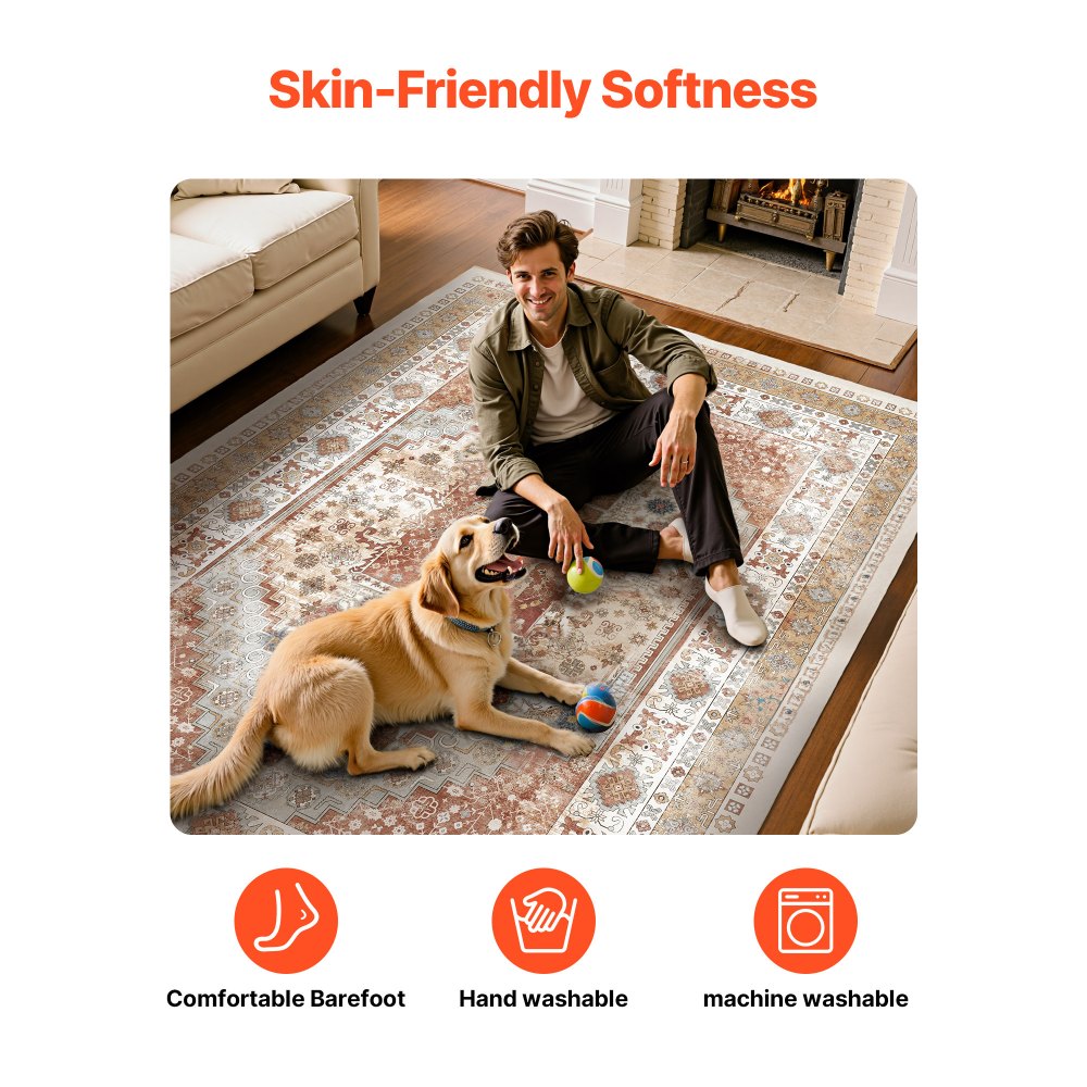 Lavable a máquina: Diseñado con reverso de agarre TPR y lujosos bordes de imitación cachemira que se mantienen perfectamente planos. Supera las lavadoras a la perfección: lavar, centrifugar, sacudir suavemente y listo. Recomendamos evitar el uso prolongado de aspiradoras robot de alta potencia para conservar la alfombra en perfectas condiciones
