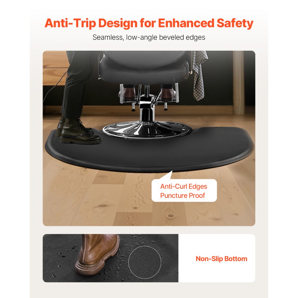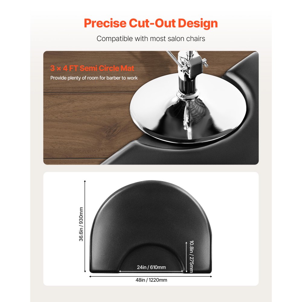 Alfombrilla de Peluquería para Estilistas, Semicircular, Antifatiga, con Corte Redondo, Superficie de PVC Fácil de Limpiar y Bordes Biselados Antirretroceso, 1220 x 930 x 25 mm, Negro Mate - Construcción y estructuras