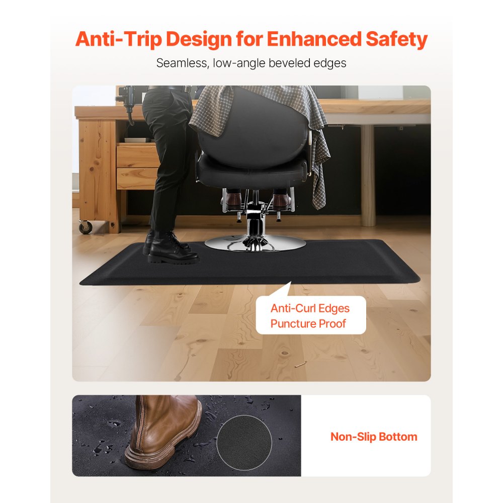 Alfombrilla de Peluquería Rectangular, Antifatiga, de PVC y NBR, con Corte Redondo, Bordes Biselados Antirretroceso y Base Antideslizante, Fácil de Limpiar, 1525 x 910 x 13 mm, Negro Mate