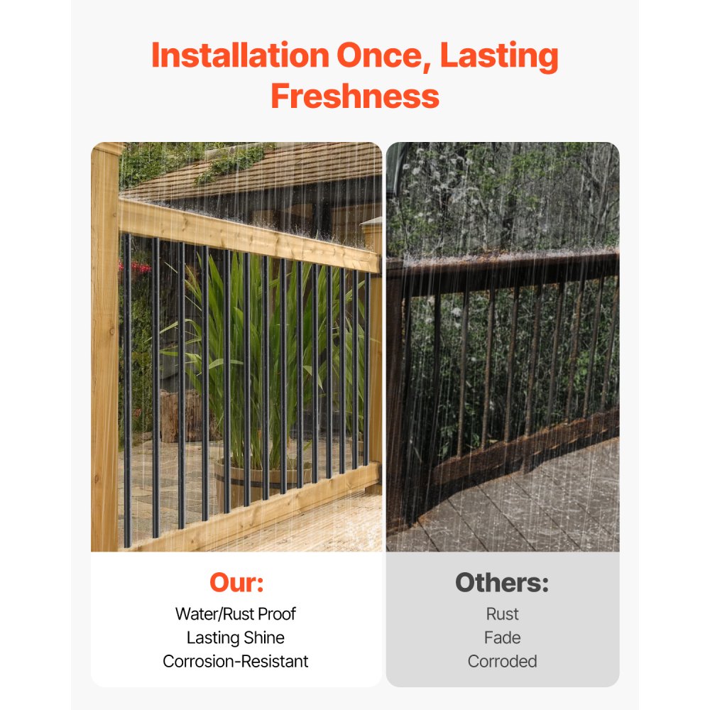 Juego de 101 piezas: Estos balaustres satisfacen diversas necesidades de instalación. Con un espaciado máximo de 10,16 cm, el juego incluye 101 piezas, lo que facilita la construcción de un sistema de cerca estable y confiable