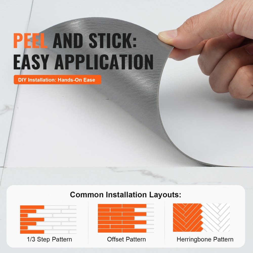 Hogar decorativo: con una apariencia de textura de mármol, la superficie de este piso despegable y adhesivo cuenta con texturas auténticas y claras, con un acabado suave y elegante, creando una hermosa apariencia que recuerda a los pisos de madera real para mejorar la estética de su hogar.