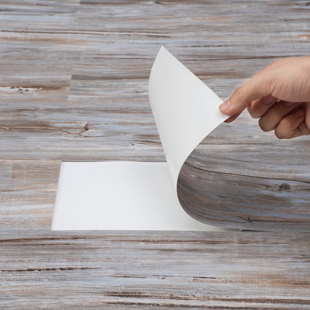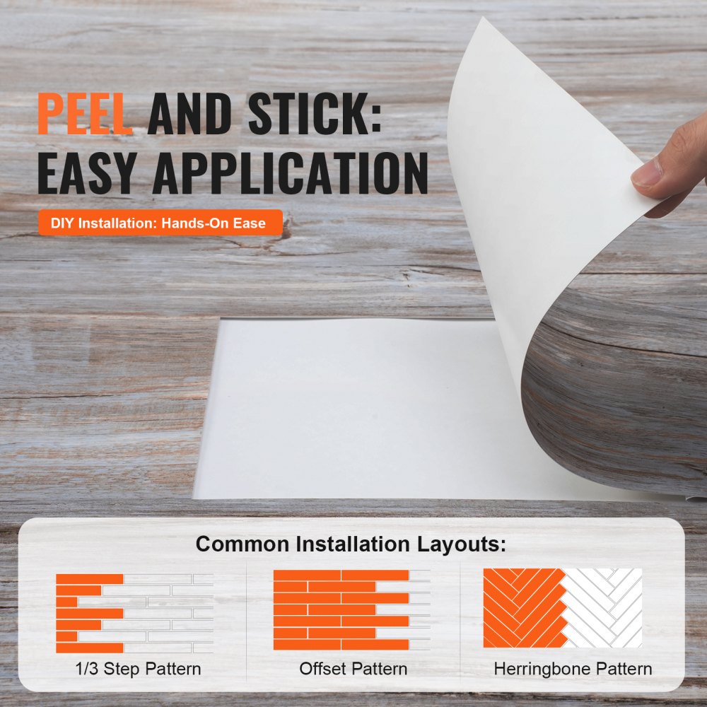 Hogar decorativo: con una apariencia de veta de madera, la superficie de este piso despegable y adhesivo cuenta con texturas auténticas y claras, con un acabado liso y elegante, creando una hermosa apariencia que recuerda a los pisos de madera real para mejorar la estética de su hogar.