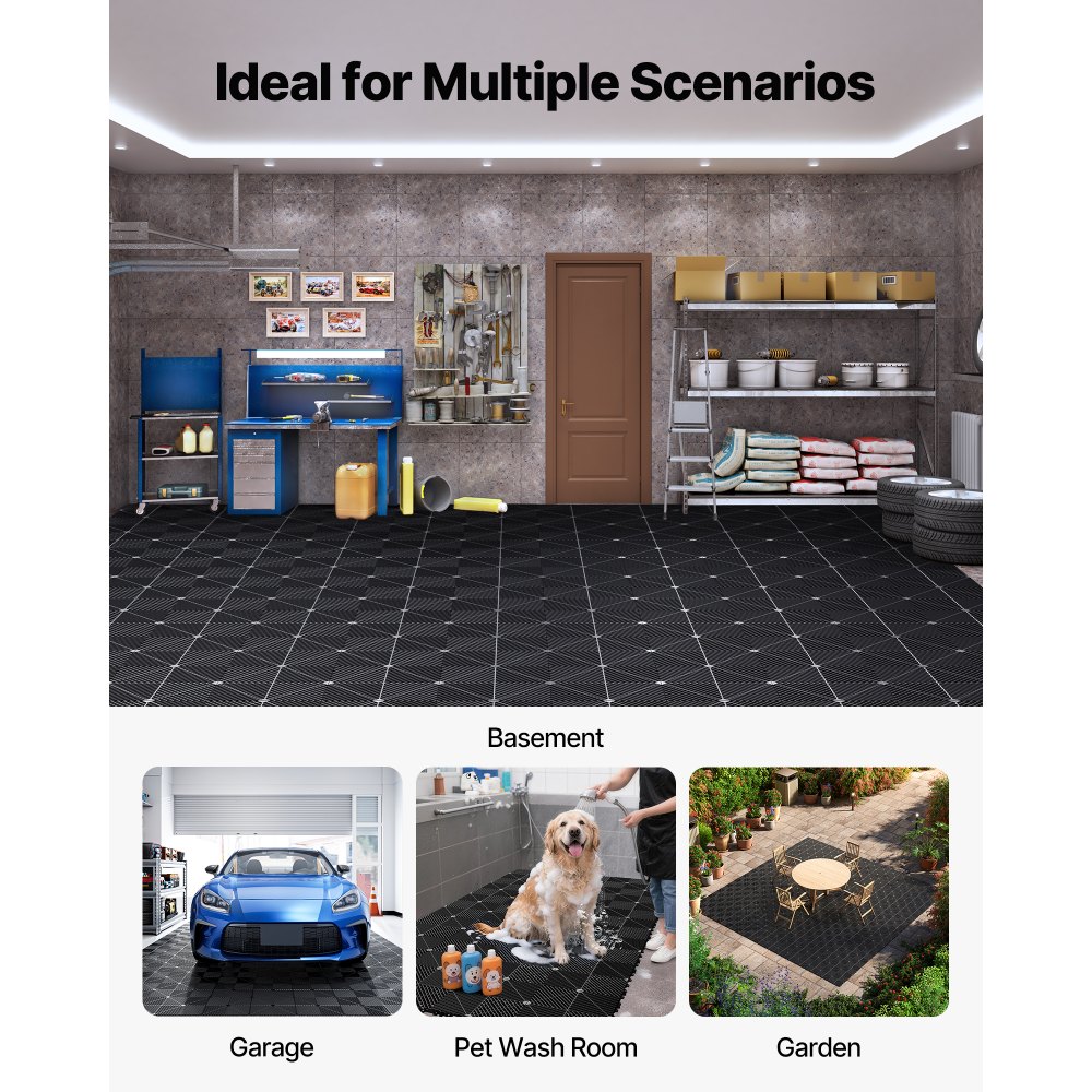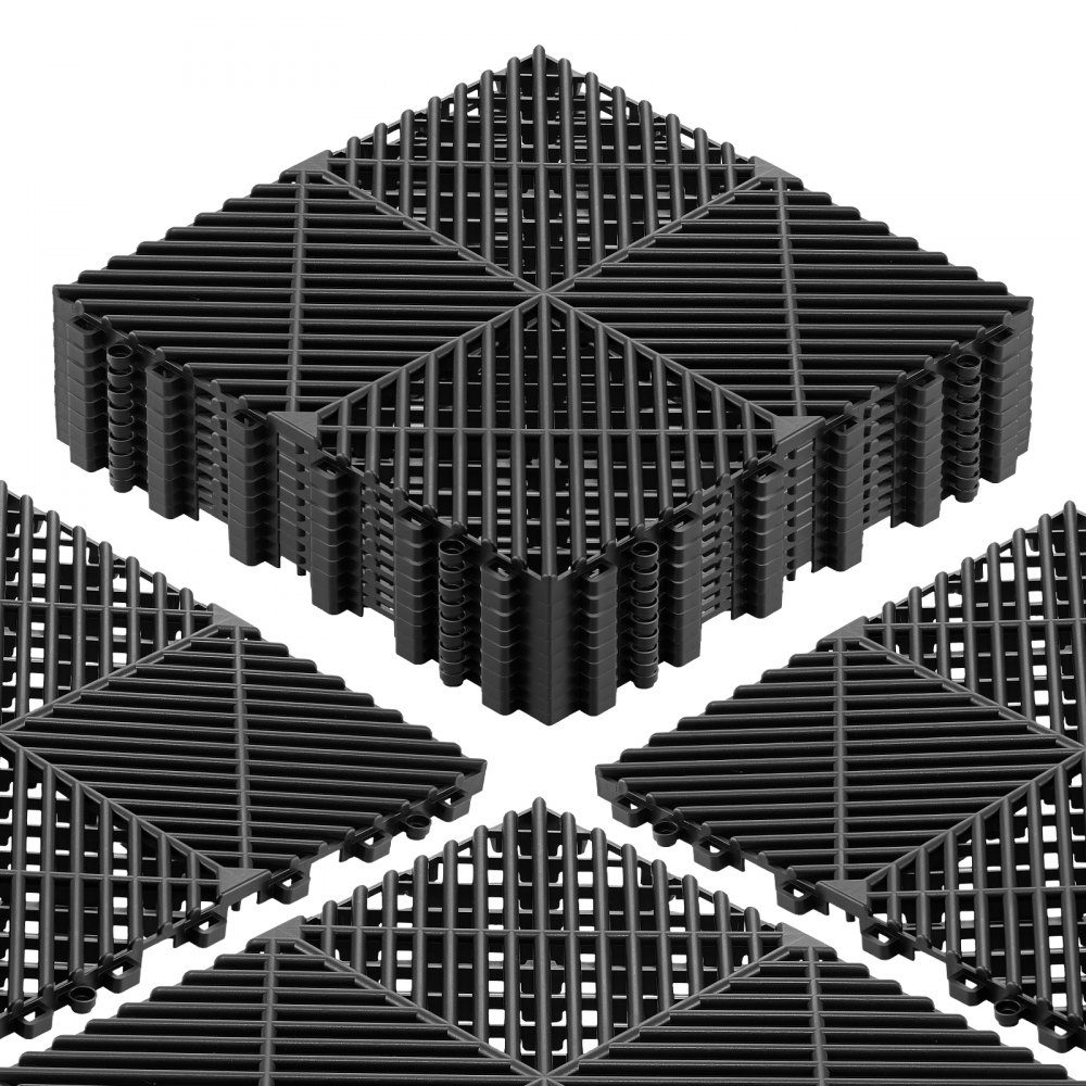 Baldosas para Garaje Entrelazadas, 310 x 310 mm, Paquete de 12 Piezas, Azulejos de Drenaje de Polipropileno, Autoventilado, Antideslizante, Suelo Modular para Cocina Piscina Baño, Color Negro - Construcción y estructuras