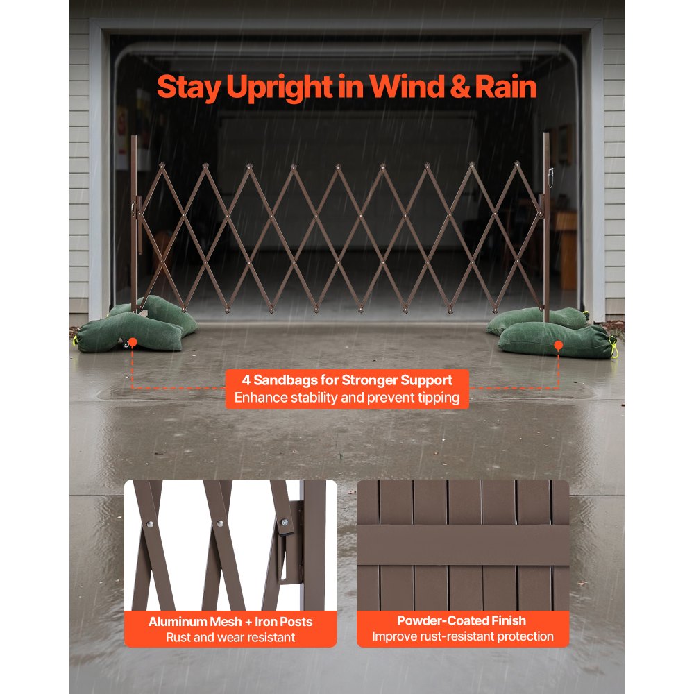 Barricada Extensible de 3,07 m, Barrera de Seguridad Plegable, Valla Metálica Portátil con Rueda y Freno, Aleación de Aluminio, para Jardín Patio Construcción Control de Espacios, Color Marrón