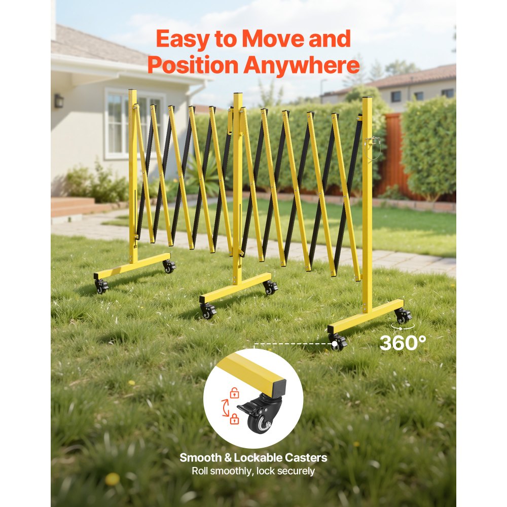 Fácil de extender: Incluye un conector entrelazado. Si la longitud de la barricada no es suficiente, puede conectar fácilmente más barricadas para extenderla (Comprar el mismo modelo de VEVOR para extensión)