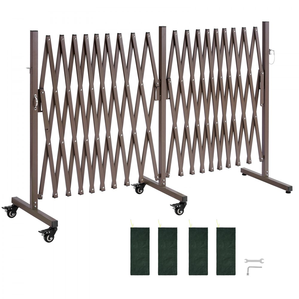 Barricada Extensible de 6 m, Barrera de Seguridad Plegable, Valla Metálica Portátil, con Ruedas y Frenos, Aleación de Aluminio, para Jardín Patio Construcción Control de Espacios, Color Marrón - Construcción y estructuras