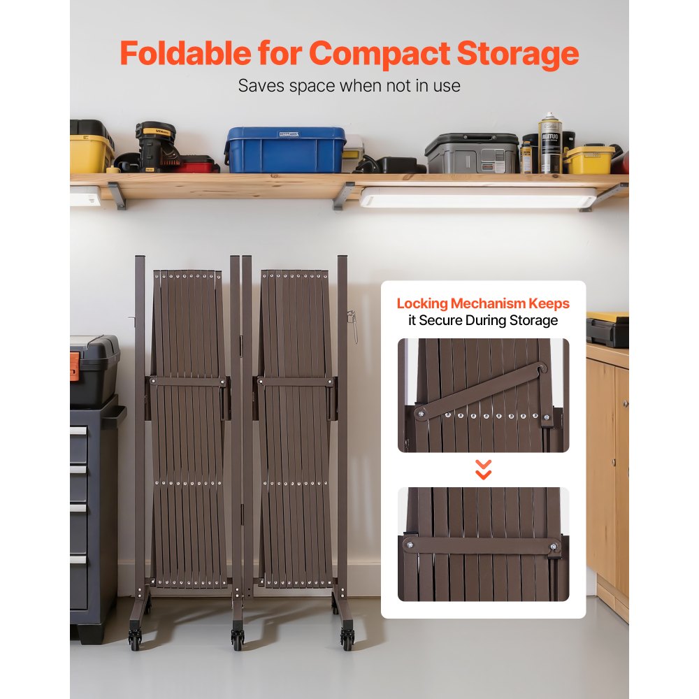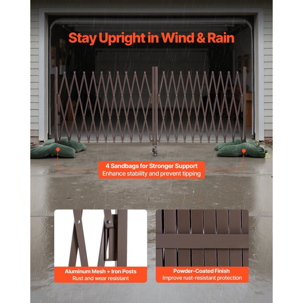 Barricada Extensible de 8,18 m, Barrera de Seguridad Plegable, 2 Verjas Giratorias, con Ruedas y Frenos, de Aleación de Aluminio, para Jardín Patio Construcción Control de Espacios, Color Marrón - Construcción y estructuras