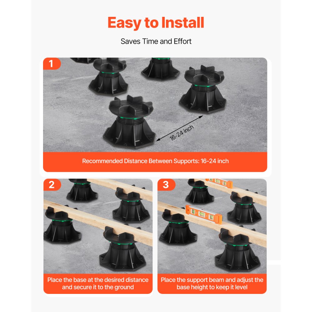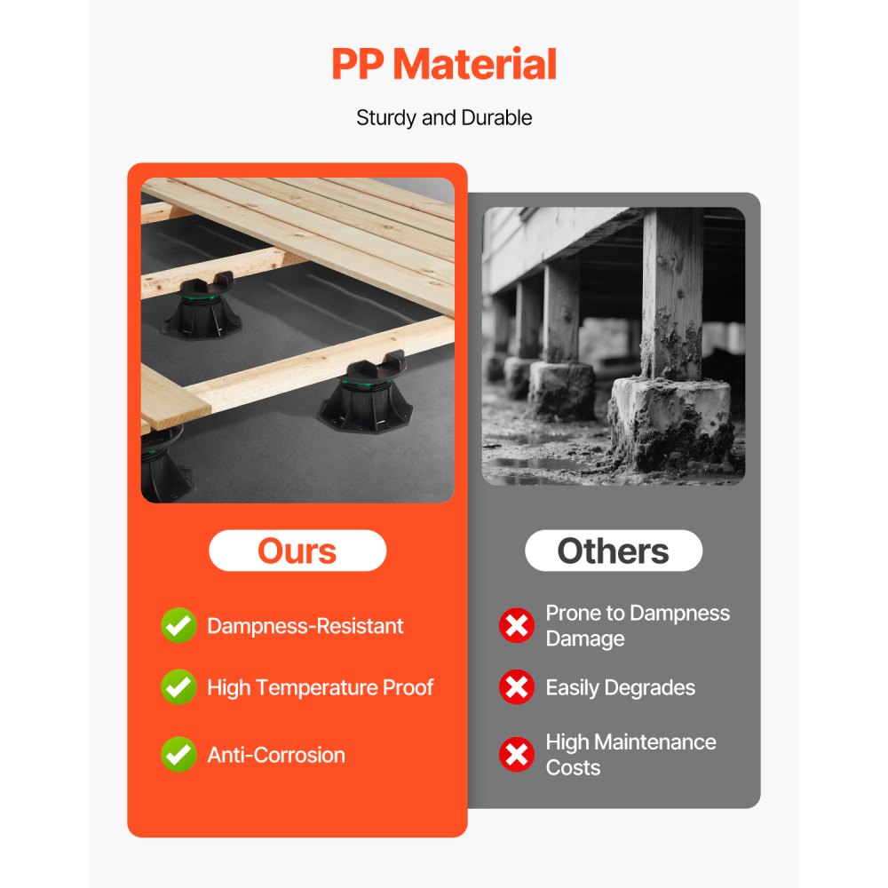 Capacidad de carga de alta resistencia: Nuestra base para terraza soporta hasta 1000 kg, lo que proporciona un soporte robusto para terrazas exteriores, suelos de patio, plataformas de columpios y otras estructuras. Evita tambaleos y daños, garantizando una seguridad más fiable tanto para aplicaciones residenciales como comerciales