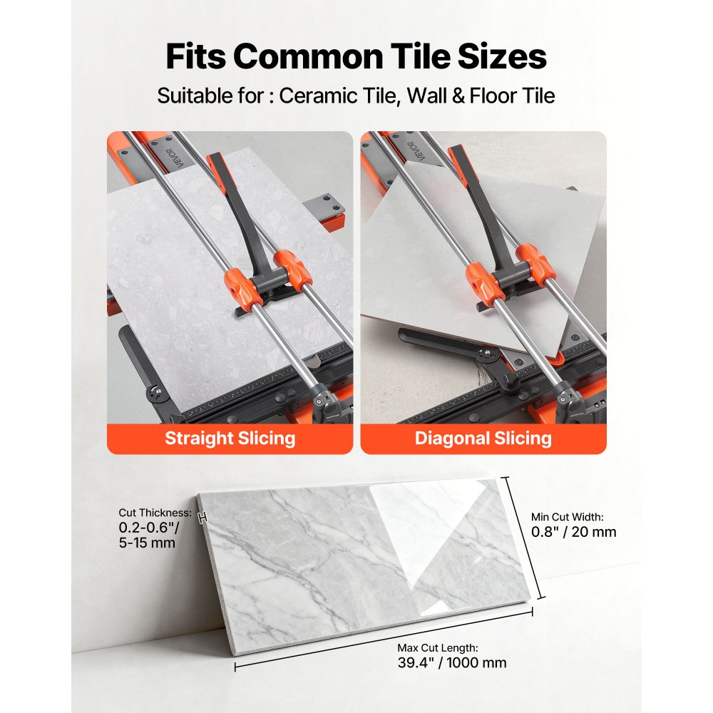 Cortadora de Azulejos Manual 1000 mm con Cabezal Deslizante Mejorado, Base con Resorte, Guía de Alineación, Corte Recto y Diagonal, Ruedas de Corte 8 y 22 mm para Suelo Baldosas Pared y Cerámica