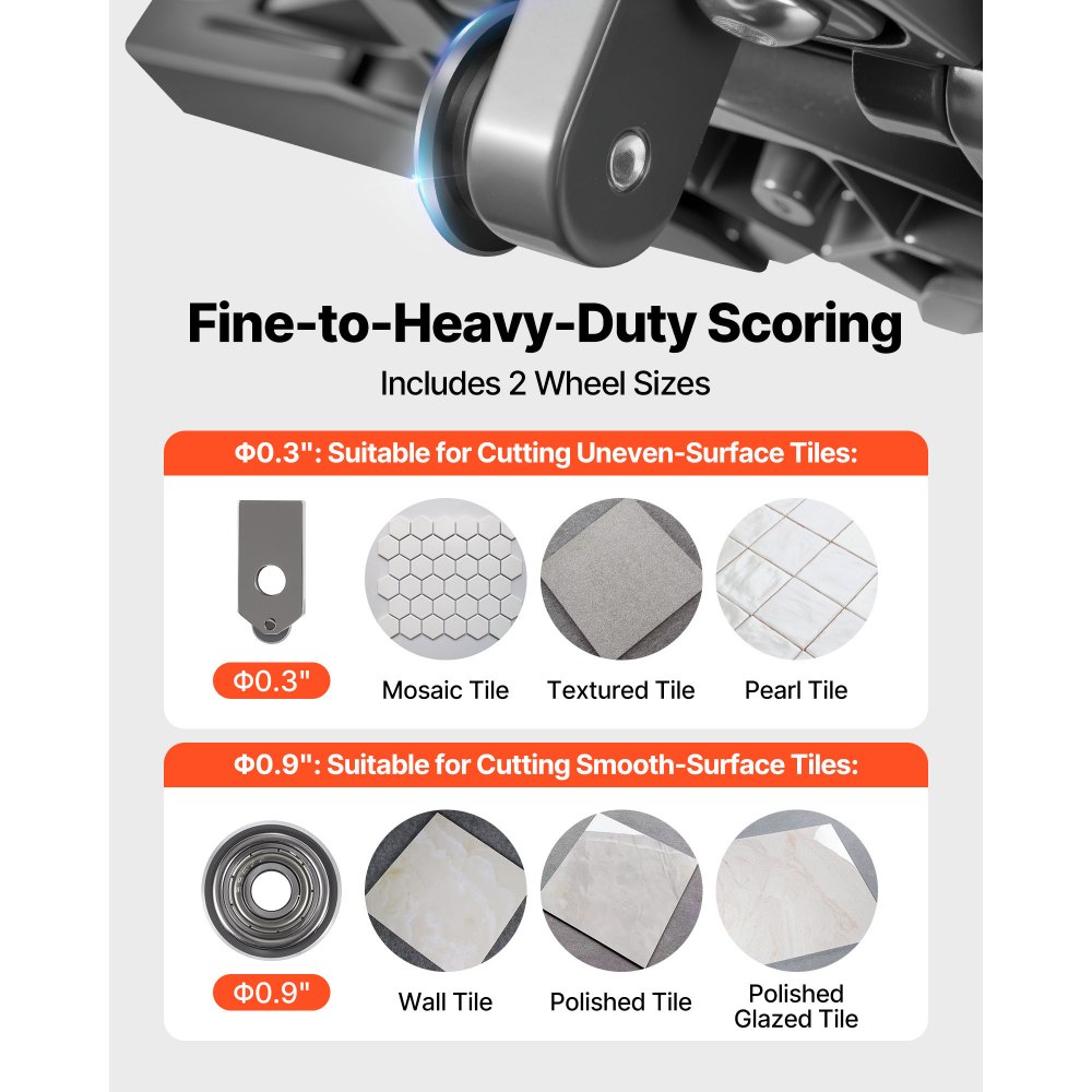 Dos tamaños de rueda de corte incluidos: Realice cortes precisos con dos ruedas de corte intercambiables. La rueda de 8 mm es adecuada para mosaicos y superficies texturizadas, mientras que la de 22 mm es ideal para azulejos lisos o pulidos