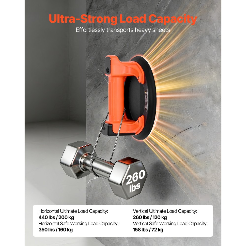 Elevador eléctrico de succión profesional de 203 mm: Este elevador de succión inteligente recarga automáticamente el vacío para mantener la succión en superficies planas, limpias, lisas y no porosas. Le ayuda a elevar de forma segura vidrio, azulejos, plástico, láminas de metal y piedra