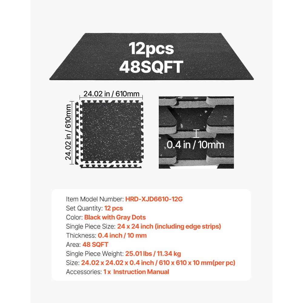 Esterilla Puzzle 12 Piezas de 610 x 610 x 10 mm, Suelo Gimnasio de Goma EVA, Colchoneta de Ejercicios Alta Densidad con Puntos Grises Antiruido Antigolpe Antideslizante para Equipo Pesado, Casa - Construcción y estructuras