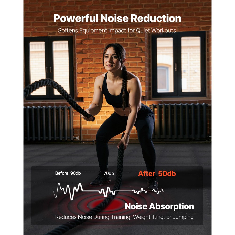 Reducción eficaz de ruido y golpes: La goma gruesa de la alfombrilla para equipos de fitness reduce la vibración y el ruido del equipo, ideal para apartamentos y gimnasios en garajes
