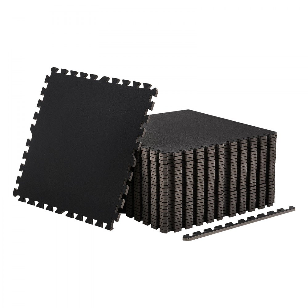 Esterilla Puzzle 24 Piezas de 610 x 610 x 14 mm, Suelo Gimnasio de Goma EVA Alta Densidad, Colchoneta de Ejercicios Color Negro Antiruido Antideslizante Antigolpe para Equipo Pesado Casa Oficina - Construcción y estructuras