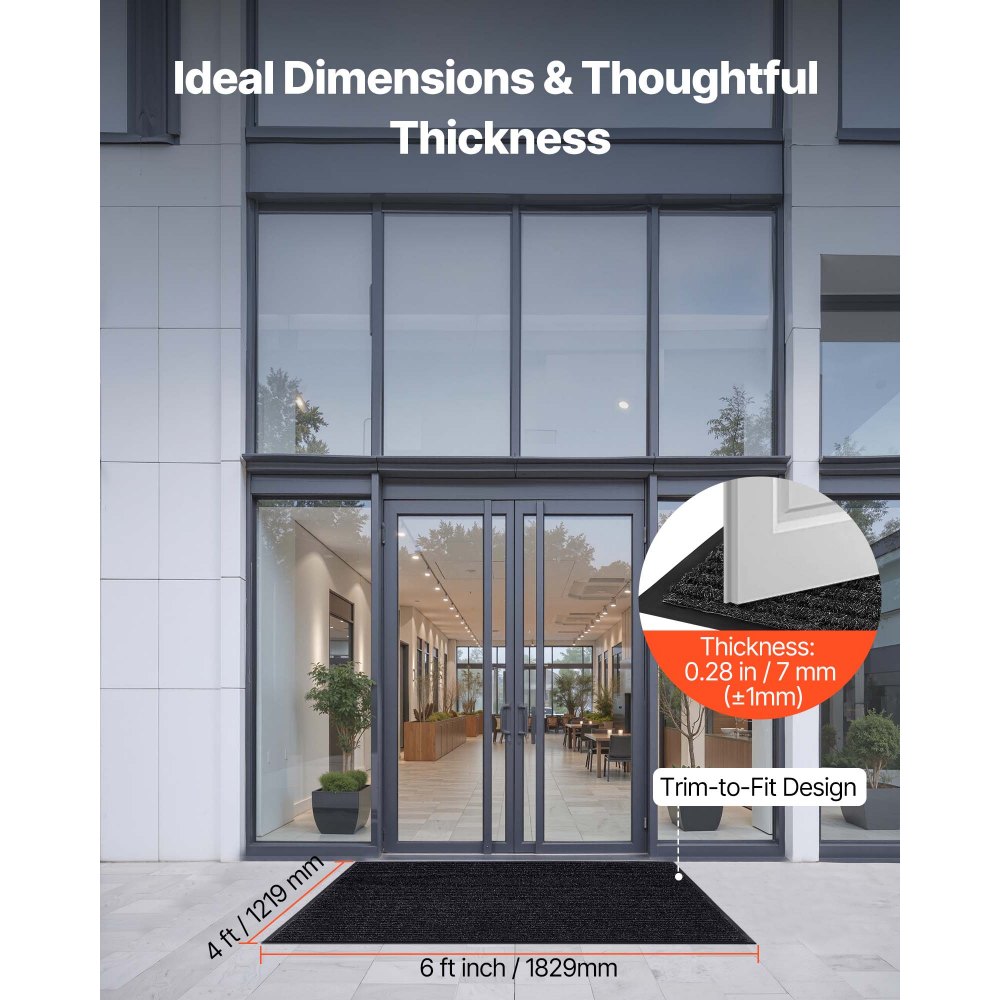 Tamaño grande: El felpudo de la puerta de entrada mide 1829 x 1219 mm con un grosor de 7 mm, adaptándose perfectamente a pasillos, patios y porches.