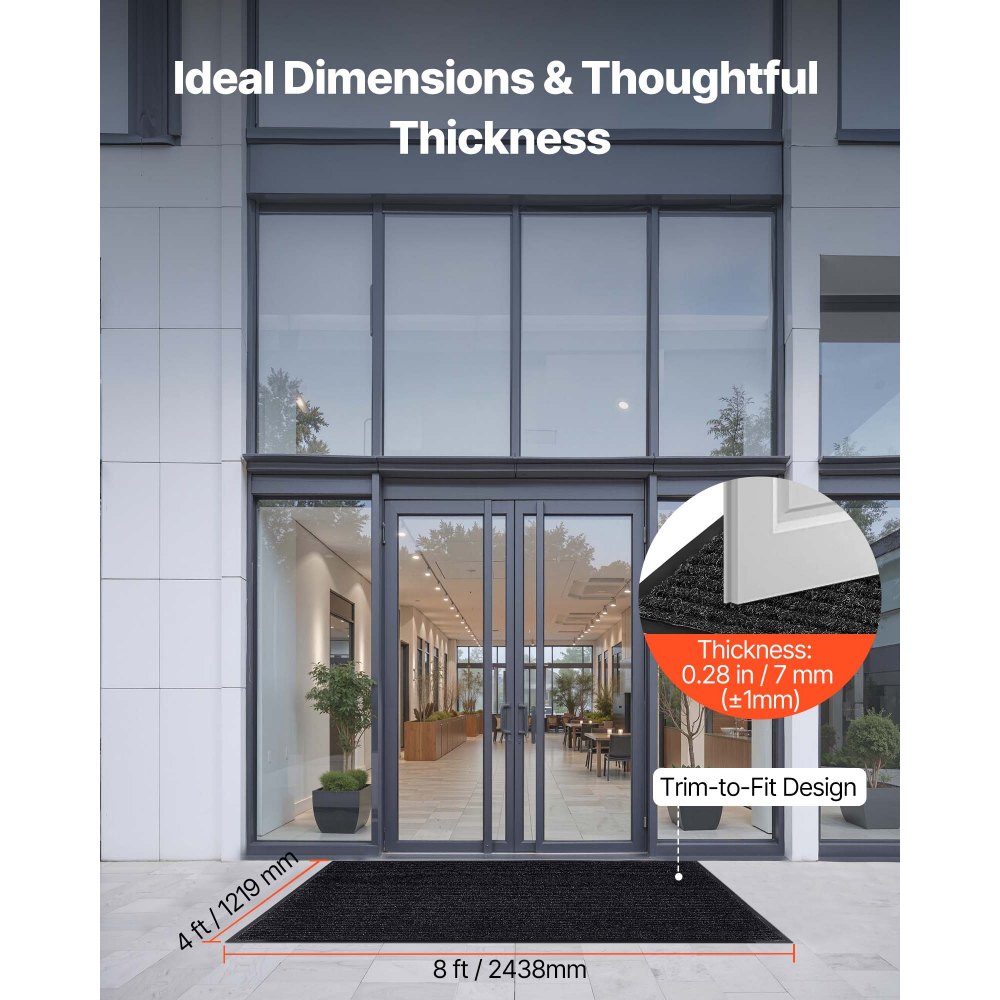 Tamaño grande: El felpudo de la puerta de entrada mide 2438 x 1219 mm con un grosor de 7 mm, adaptándose perfectamente a pasillos, patios y porches