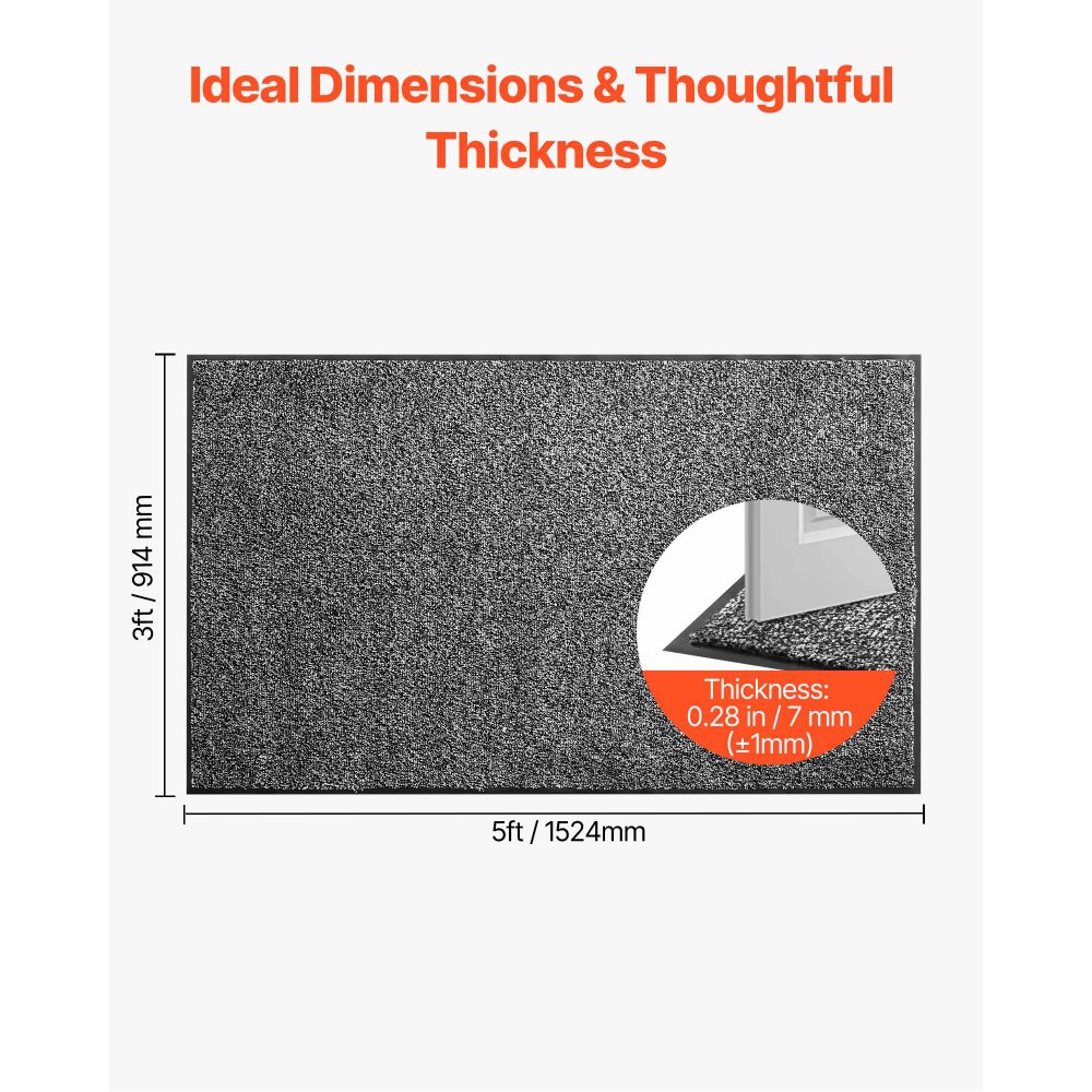 Especificaciones del producto: El tapete comercial mide 1524 x 914 mm y tiene un grosor de 7 mm. No se atasca en los huecos de las puertas y cubre un área mayor, lo que lo hace ideal tanto para uso doméstico como comercial