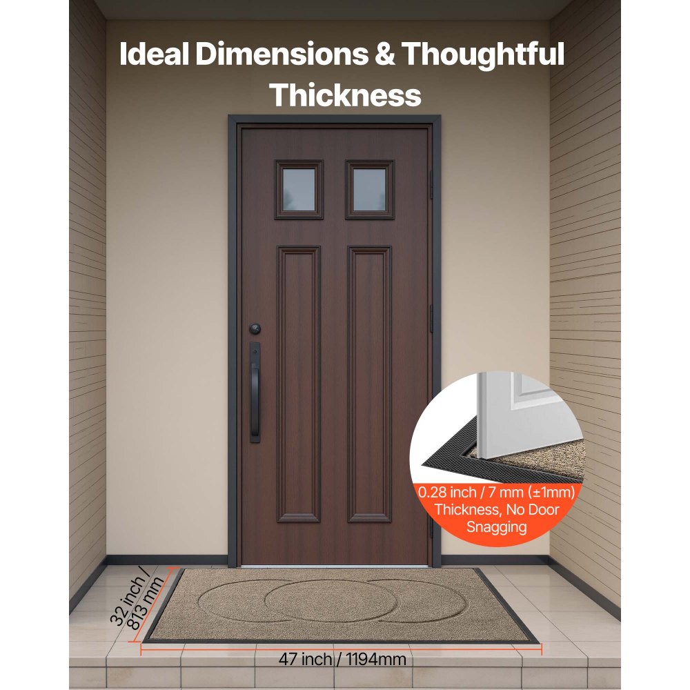 Tamaño grande: El felpudo de la puerta de entrada mide 1194 x 813 mm con un grosor de 7 mm, adaptándose perfectamente a pasillos, patios y porches